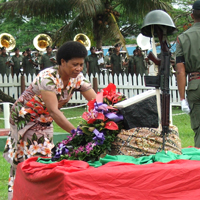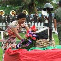 Original story and picture FijiVillage: Leba Rawaileba lays a wreath for her husband.