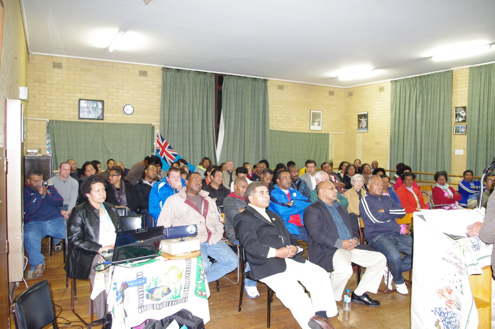 I was at the meeting in Melbourne last night. First of all there was no wedding next door (Annon 11.59am go get a life and stop the bullshit). The church hall was full to capacity and people standing outside. Youll have to ask the organisers for the correct number). It was a good night of discussion, a lot of people were able to ask the two guest speakers direct questions on the 10point plan, the way forward and Ratu Tevita's involvement in the military. A lot of people are concerned about family in Fiji, the overall economy in Fiji and of course impact this suppressive regime. What people really appreciated is that they were to discus this in an open forum which the people are denied of doing in Fiji. I think the key question is how can we who live in a free society make the most effective impact to bring about change in Fiji? Again many ideas were thrown around and one of the main suggestions is to spread the ugly truth about this regime and to up the international pressure on the regime amongst other things. But each individual has a part to play if we really want this badly. Change will happen people!!!!!!The momentum is building as the two speakers make their way around Australia, NZ and the Pacific.
