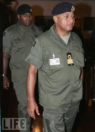 The junta dictator is a thug and crook, a low and no class man surrounded by a gang of thugs as body guards, just look at his face in the photo and goons beside him, are these leaders of fiji and some one called a prime minister.