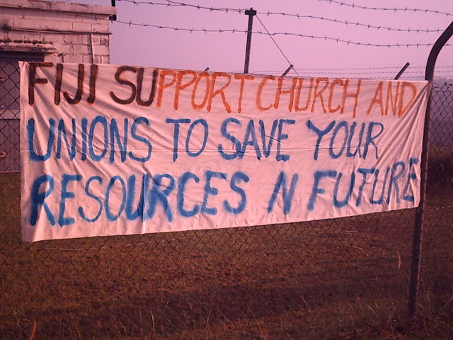 Reiterating its message of people standing up against the coup bandits and needing to support the Methodist Church and the unions, VRF says these banners were posted on the fence of the Vodafone repeater at Maro Sigatoka.