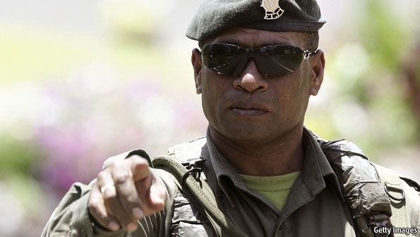 STAND DOWN FRANK: Some way still has to be found to ease Bainimarama out of power and to rein in Fiji’s too-powerful army. pic The Economist |