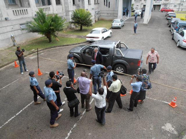 Qarase was escorted to court by officers from the Fiji Correctional Services.