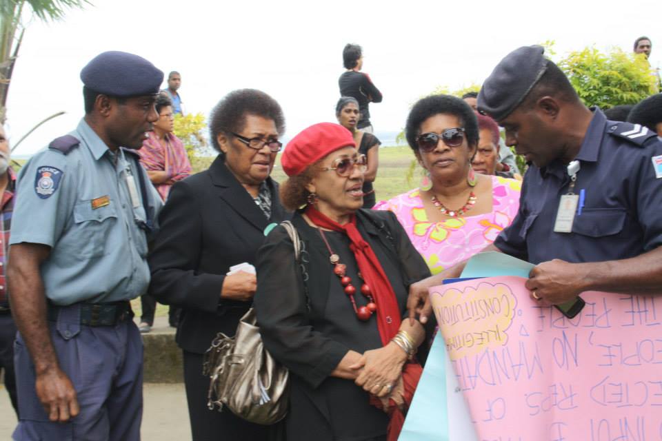 SUVA: At around 11.15 this morning six Fiji Women’s Rights Movement staff, including our Board Vice-President, staff from the Pacific Centre for Peace-building and approximately six other Fiji citizens were taken into custody by the police outside the President’s (Government) House.