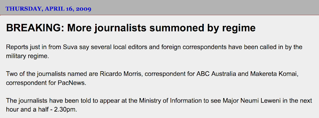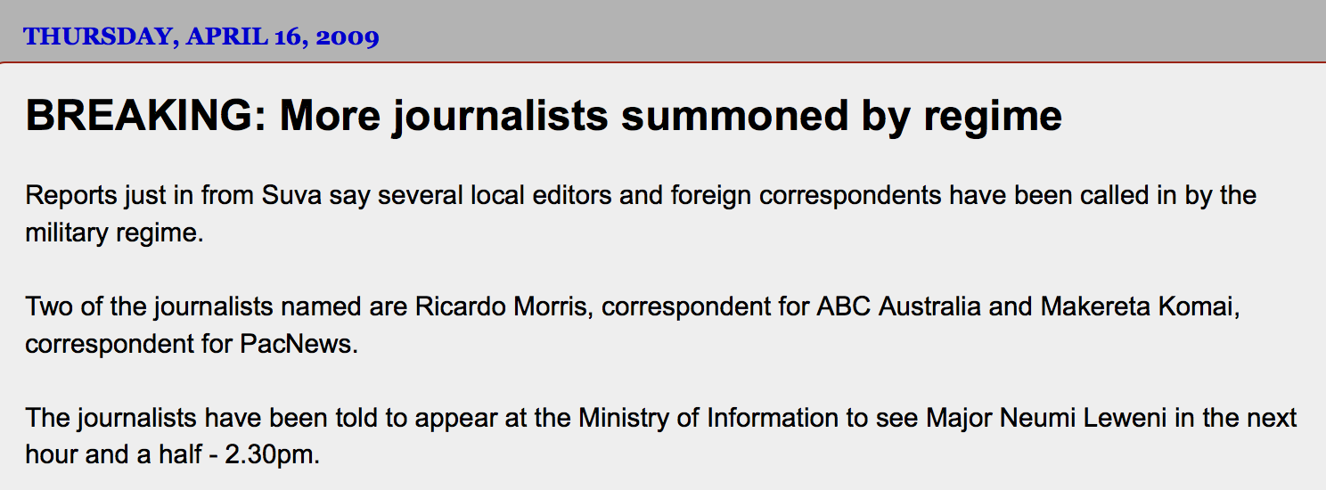 This was two years after the Bainimarama coup, around the time when censors were sent into newsrooms to monitor and approve what stories the media could publish.